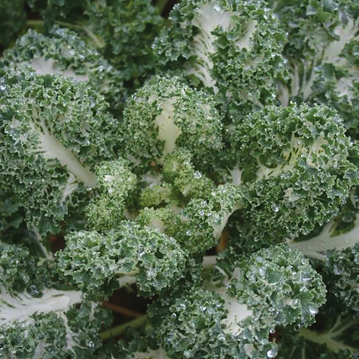 (60 Day) One of the most flavorful kales around. The frilly leaves have bright white veins and look very ornamental, but have a sweet flavor and crisp texture that is tops for eating. Plants exhibit good tolerance to bolting and are excellent for cut-and-come again harvest as well as bunching.