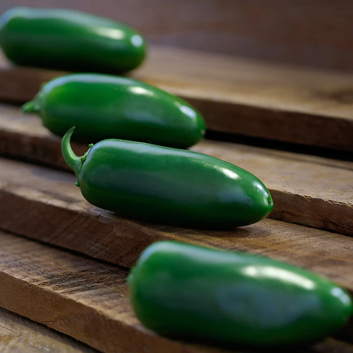 (60-65 Day) Jalapeno-type, 4-inch fruits have a rich, spicy flavor and average between 1,500 and 4,000 Scovilles. Compact plants are vigorous and highly productive. Resistant to Tobacco etch and Potato Y viruses.